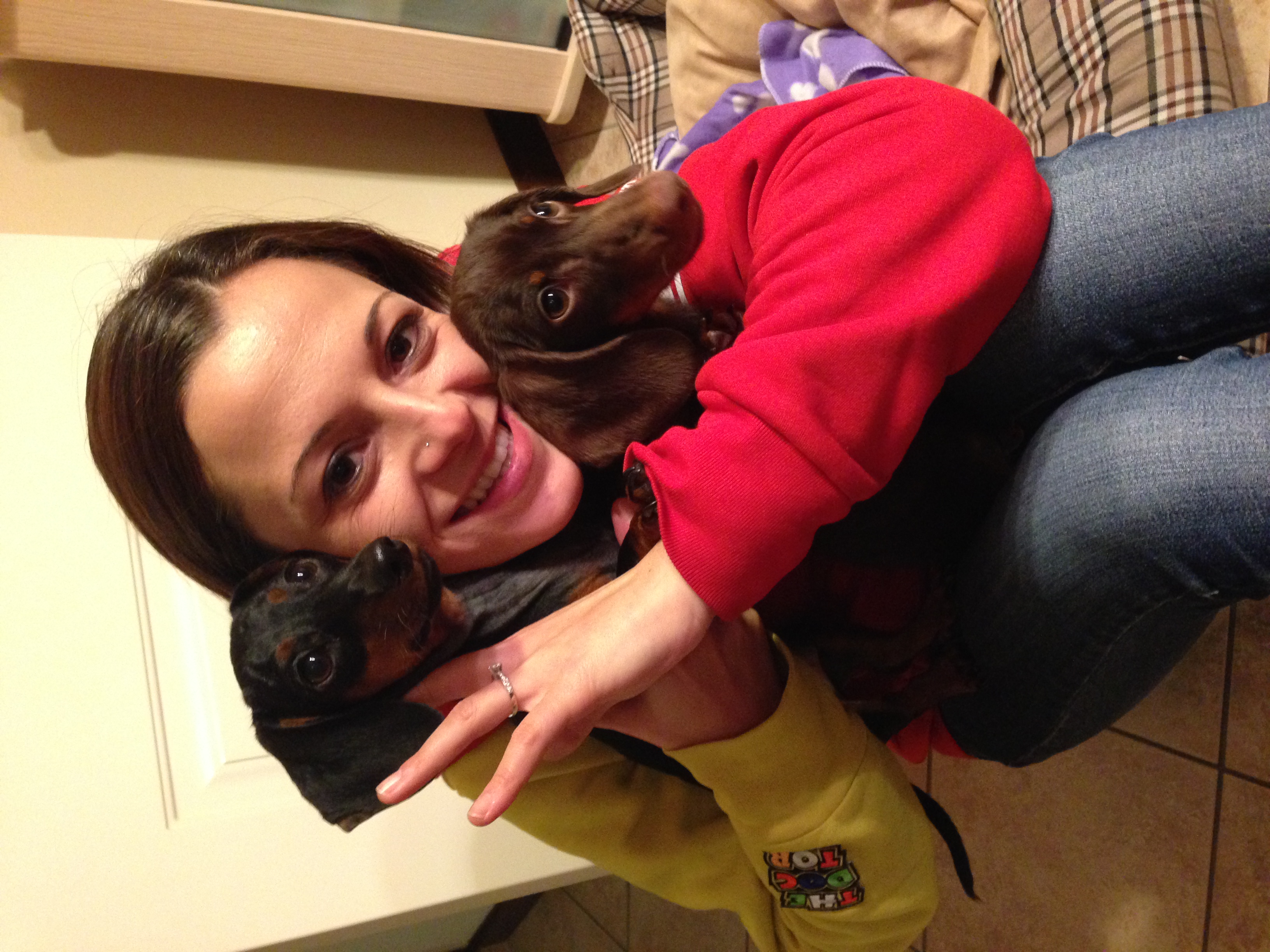 Era il 14 luglio 2013 quando rientrata a casa dal lavoro trovavo Davide (mio marito) seduto sul divano con in braccio un piccoletto di 2 kg e poco più: Gino, un cucciolo di bassotto kaninchen a pelo corto nero focato, che sonnecchiava in braccio a quello che poi sarebbe diventato “papino” e che non appena mi vide iniziò a riempirmi di baci. Ricordo ancora l’emozione del suo primo sguardo: da quel giorno niente è stato più lo stesso. Con lui è iniziata un’avventura che non immaginavamo potesse cambiare così profondamente la nostra vita. Ci siamo innamorati immediatamente di lui tanto che a pochi mesi di distanza abbiamo deciso che Gino meritava un compagno con cui condividere giochi e giornate. Ci siamo messi subito alla ricerca e a novembre è arrivato Pepito, un bassotto nano a pelo corto marrone focato. Passato qualche mese siamo tornati in allevamento per ritirare il pedigree e l’allevatrice ci consigliò di provare a portarlo in esposizione, che si sarebbe tenuta a distanza di pochi giorni per farlo “guidicare”. Così iniziammo a scoprire il mondo delle esposizioni, un’esperienza che ci ha fatto entrare in una grande famiglia fatta di passione, dedizione e amore per i bassotti.